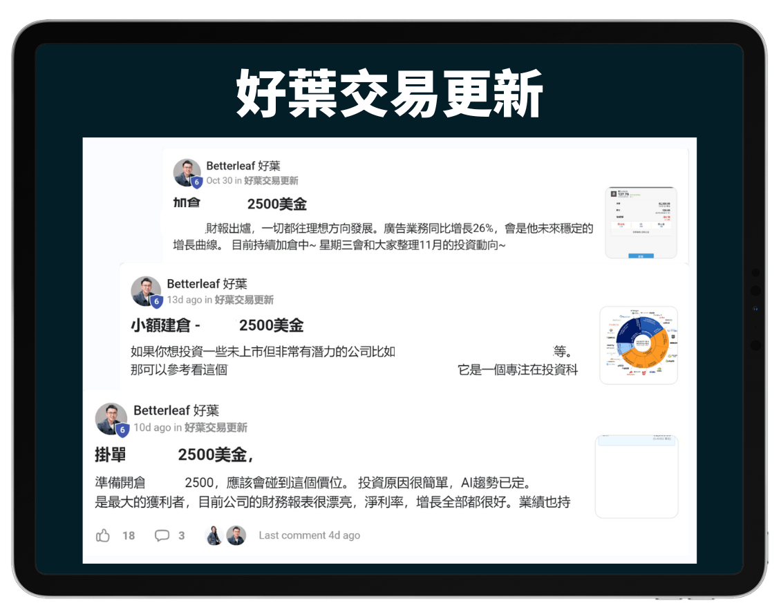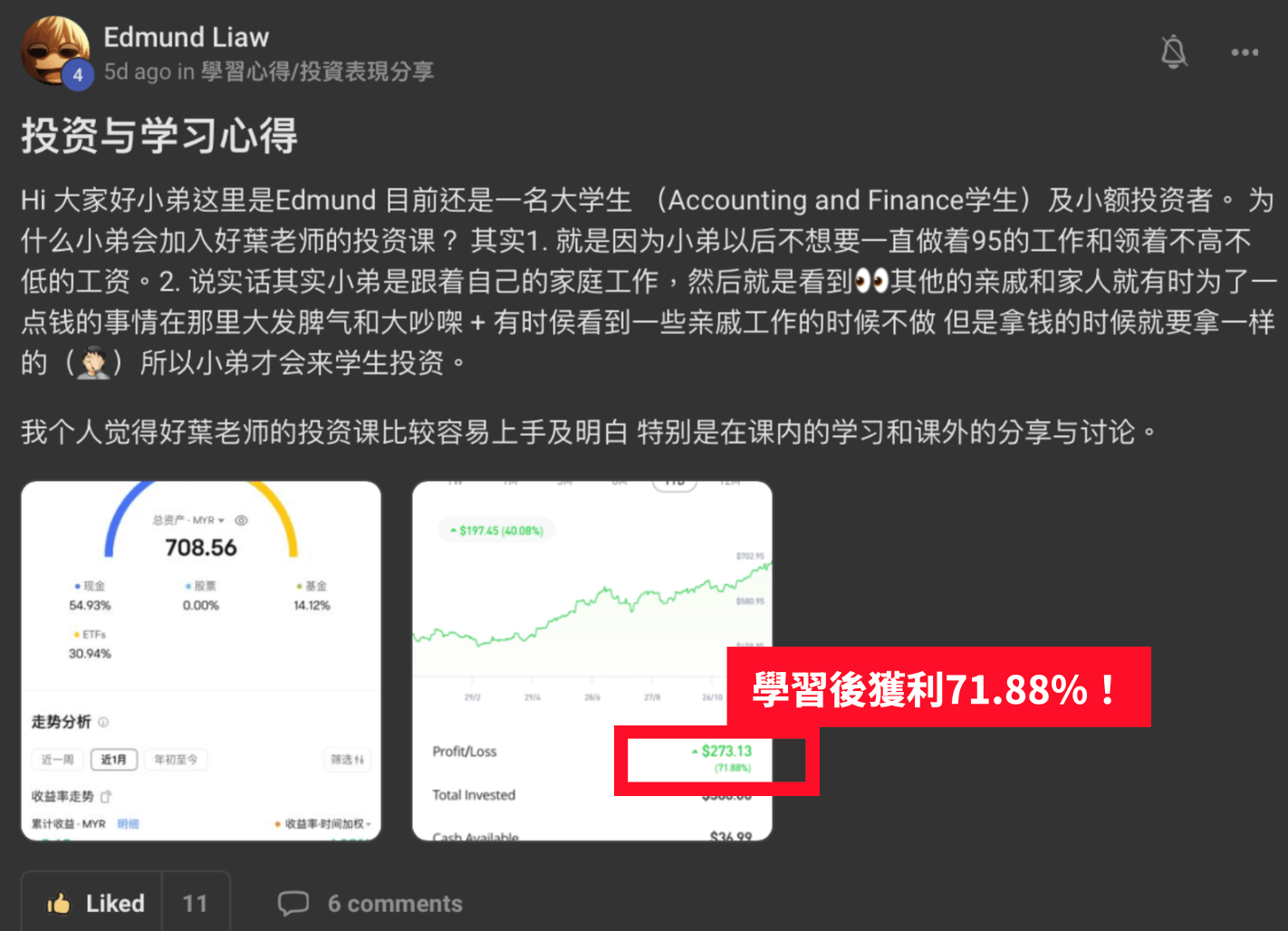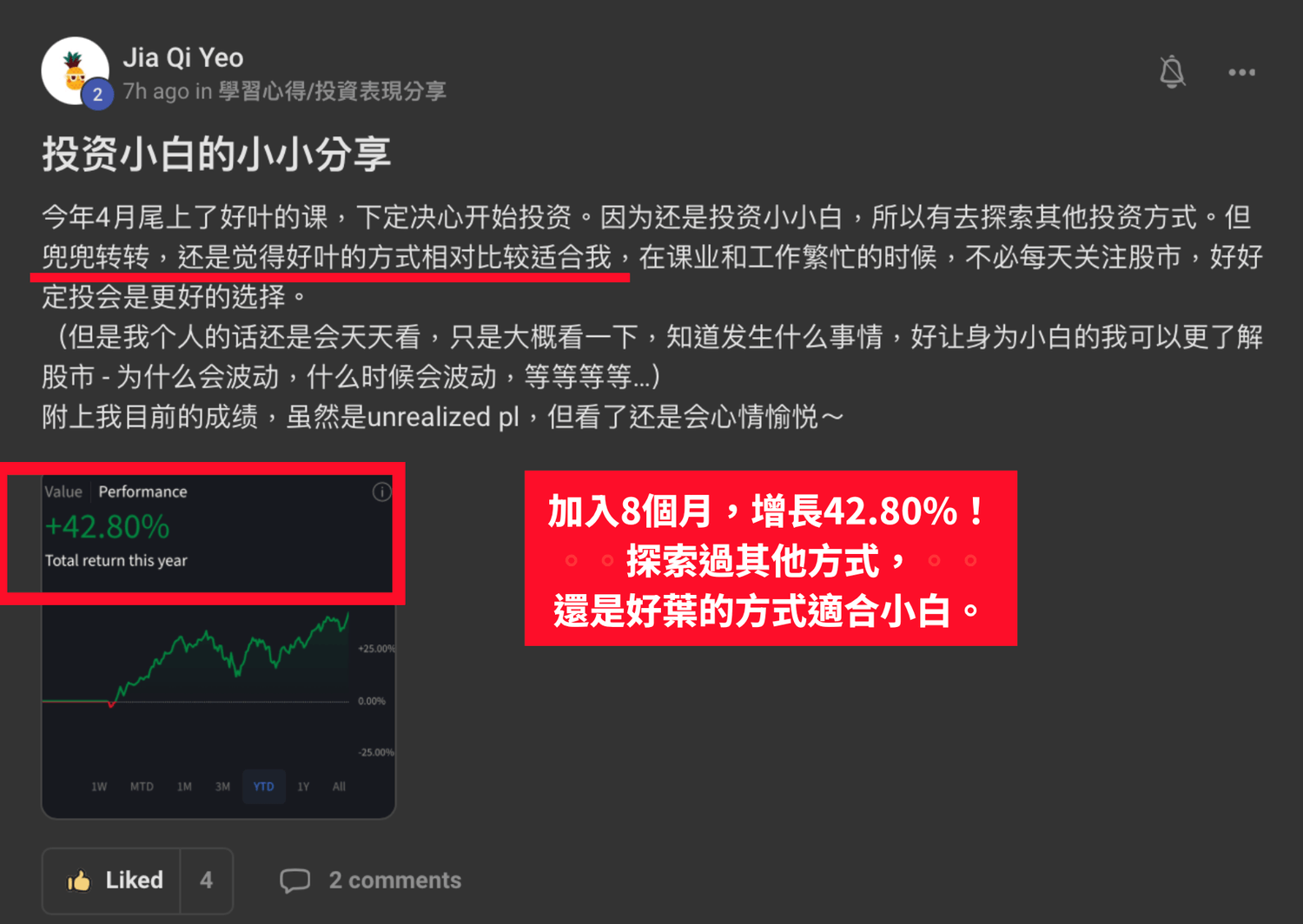 可隨時在社群中發帖,與好葉及其他投資者討論任何學習上