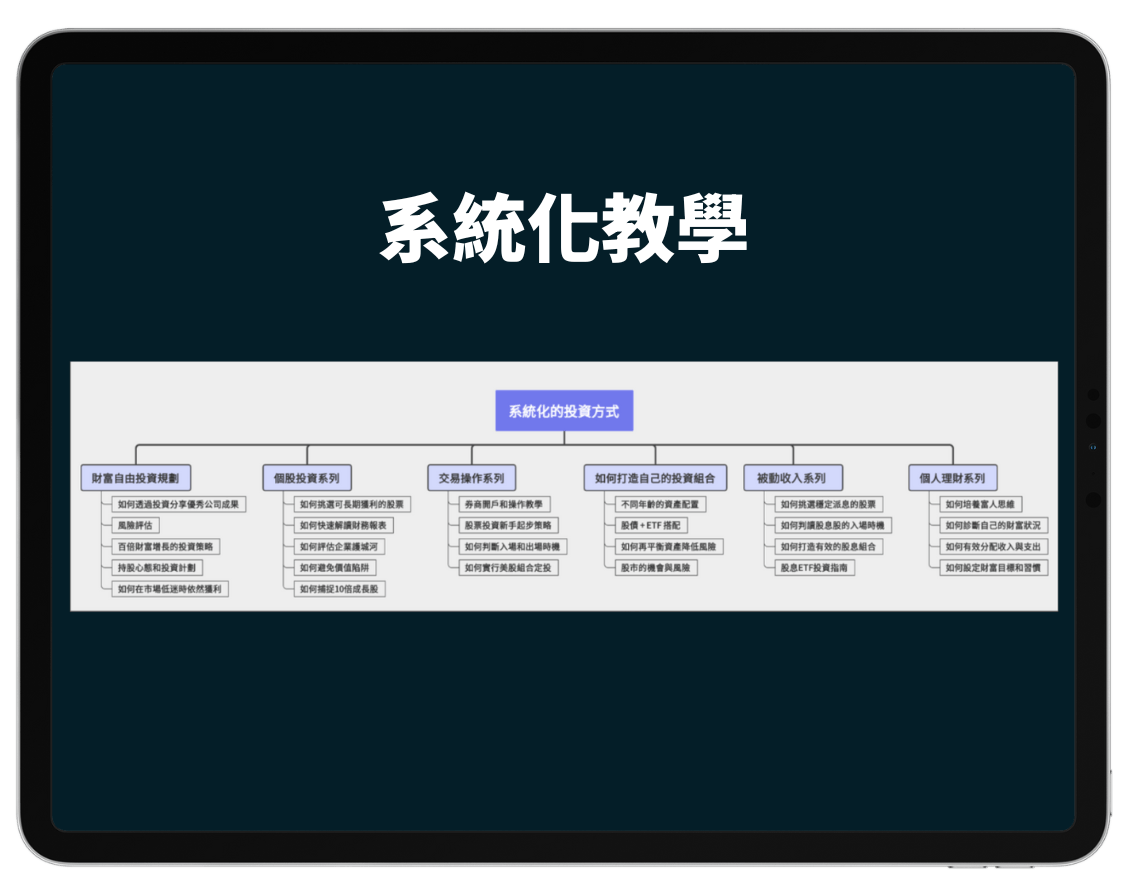 我們的課程會從0開始講解,從開戶到選股,到判斷入場和出場時機、甚至投資組合打造,都會用最簡單易懂的方式來教會你,保證新手也能快速上手開始投資!