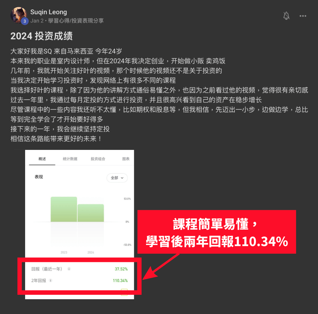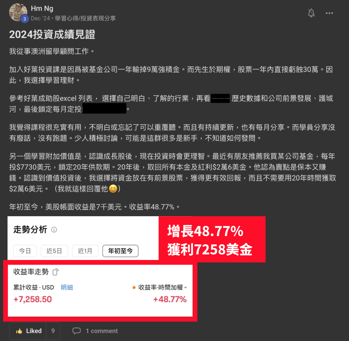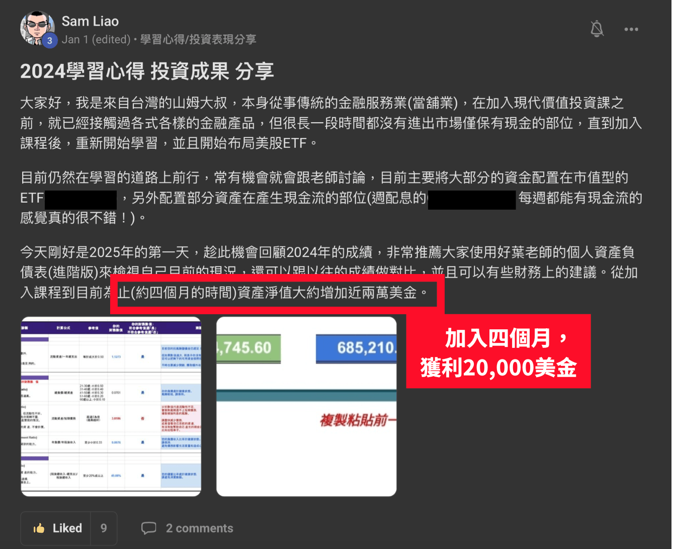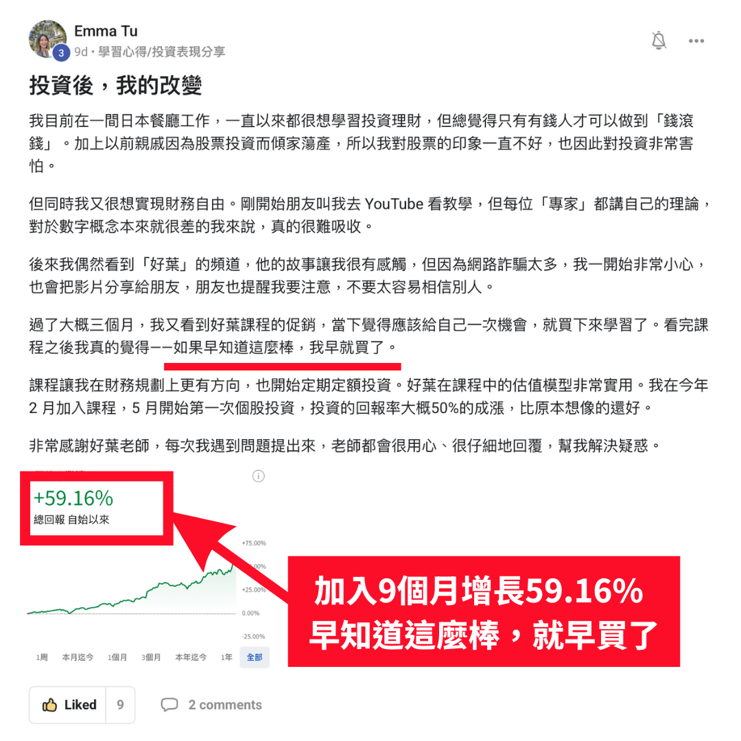 跟著好葉學習後,我改變了過往的消費習慣,還重整自己的投資組合。