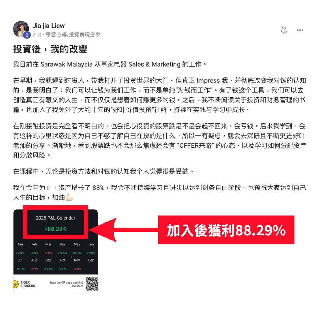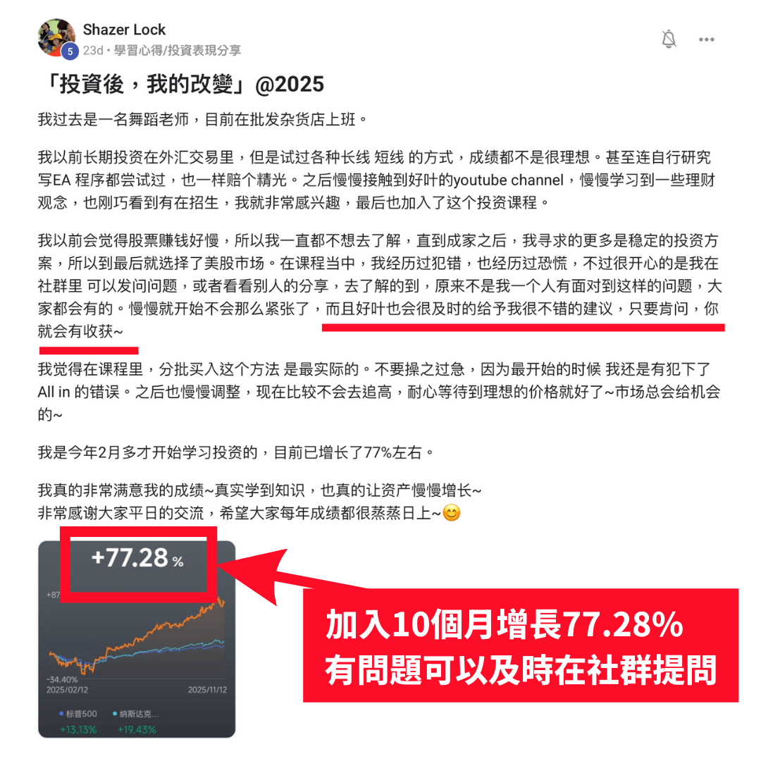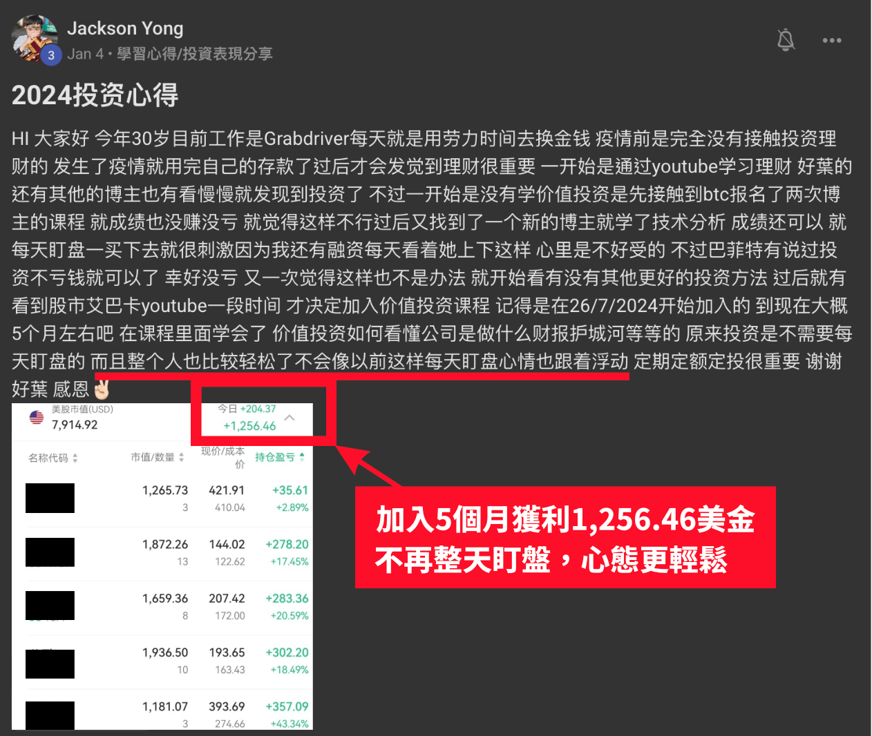 放心,加入後我們會有一個私密支援社群。你可以在上面發帖提出任何關於投資的問題,我都會在那邊幫你解答的。如果還是不夠,加入後還可以加入我的私人聯繫,直接私信讓我來協助你。