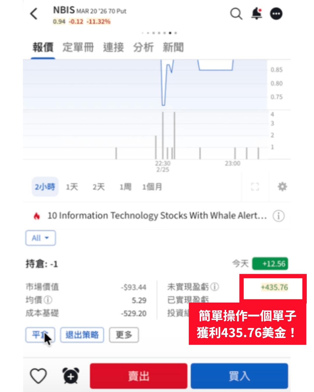 就獲利了435.76美金!