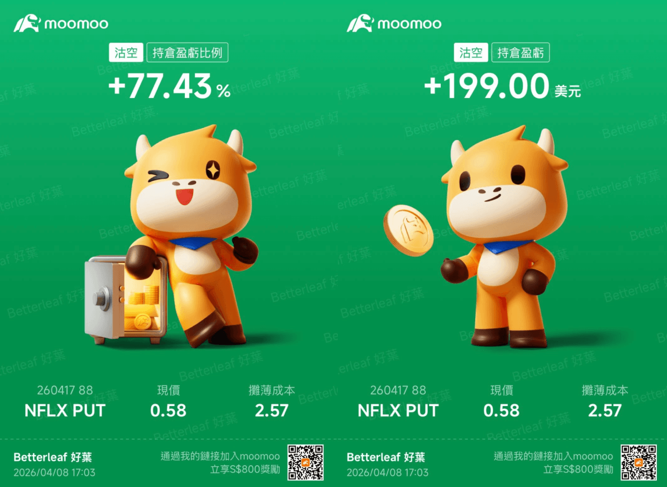 一張單子幫我盈利了199 美金!